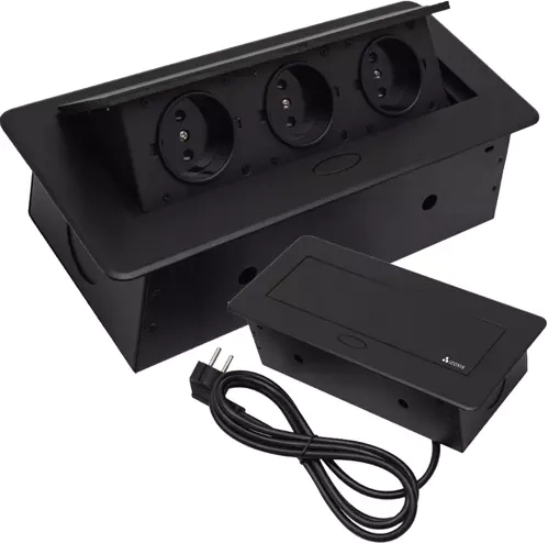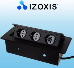 See süvistatav kolmikpistik IZOXIS ühendab modernse disaini ja praktilise lahenduse kodudesse, kontoritesse ning koosolekuruumidesse. Õhuke lame serv istub täiuslikult tööpinna tasapinnas ning must viimistlus sobitub enamiku interjööridega. Kvaliteetne metallkonstruktsioon tagab vastupidavuse ja pika tööea.