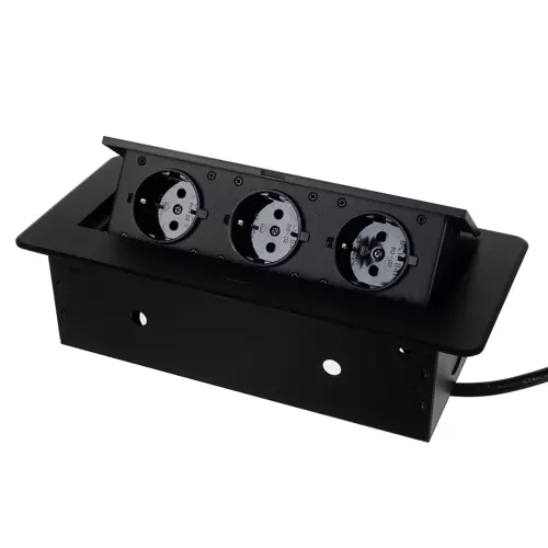Elegantne süvistatav pistikupesaliist tööpindadele ja laudadele kolme schuko pistikupesaga pakub diskreetset paigaldust, korralikku ilmet ilma kaablisassita ja ohutut 230 V toidet. Tänu väljatõstemehhanismile on toide käepärast siis, kui seda vajad, ja peidetud siis, kui mitte.
