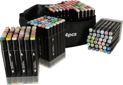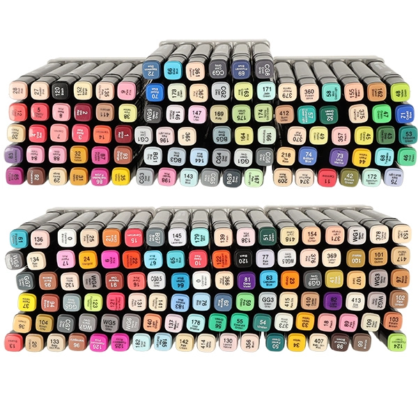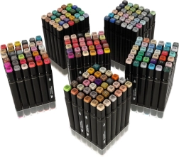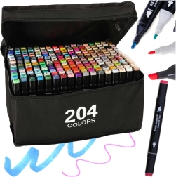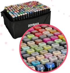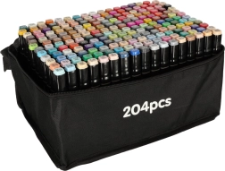 Professionaalne komplekt sisaldab 204 kaheotsalist alkoholimarkerit praktilises vutlaris ja alusega korrastatud hoiustamiseks. Pakub intensiivseid värve, kiirelt kuivavat tinti ning kahte otsikut nii suurte alade kui ka detailse töö jaoks – ideaalne illustraatoritele, disaineritele ja hobikunstnikele.