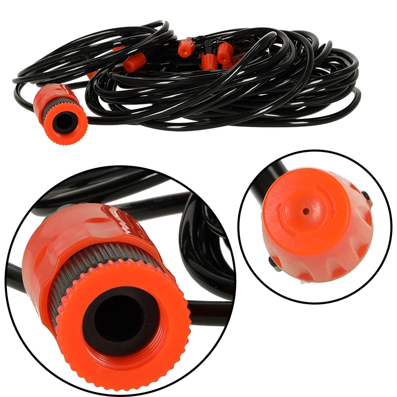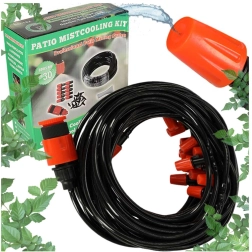 Praktiline udustamiskomplekt muudab teie aia, terrassi või kasvuhoone meeldivalt jahedaks paigaks. Õrn veeudu parandab kliimat kuumadel päevadel, vähendab ülekuumenemist ja tõstab mugavust nii puhkuseks kui ka laste mängudeks. Süsteem toimib samal ajal ka ökonoomse kastmisena – jaotab vee ühtlaselt taimedele ilma raiskamiseta.