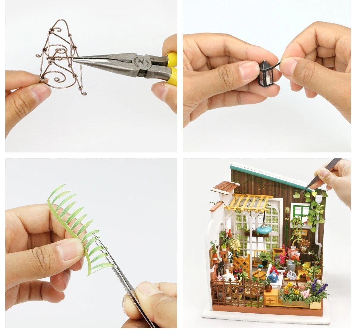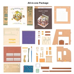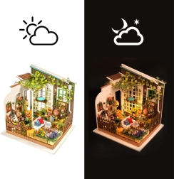 See läbimõeldud DIY miniatuur muudab teie vaba aja meeldivaks loominguliseks kogemuseks. Komplekt sisaldab eellõigatud vineerosi, paberiprinte, tekstiili- ja metallosi, värve ning liimi. Tänu LED-valgustusele tulevad kõik detailid esile ja valminud mudelist saab stiilne riiulikaunistus või töötoa aksessuaar.
