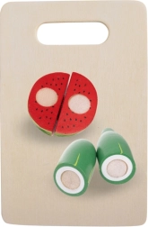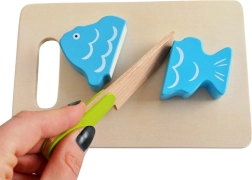 Segmentideks jaotatud puuviljad, köögiviljad ja kala „lõigatakse” puidust noakesega ja ühendatakse taas tänu takjapaelale. Suurepärane peenmotoorika ja rollimängu treening.