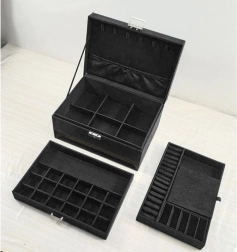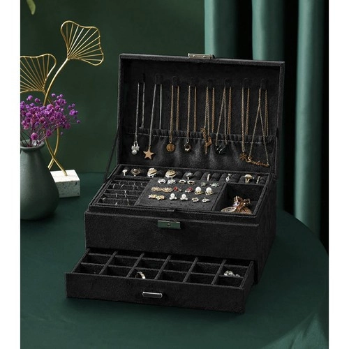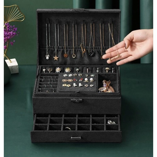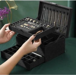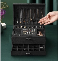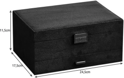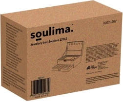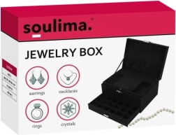 Stiilne ja praktiline SOULIMA ehtelaegas elegantses mustas värvitoonis tagab täiuslikult korrastatud ehete hoiustamise nii kodus kui ka reisil. Mitmed tasemed ja eraldi lahtrid sõrmuste, kõrvarõngaste, kaelakeede, käevõrude ja kellade jaoks, lukustatav võtmega suurema turvalisuse nimel ning pehme sametine pind, mis kaitseb kriimustuste ja tolmu eest.