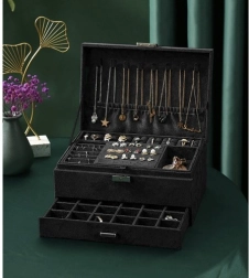 Maksimaalne maht ja kaitse – pehme pind on ehetele õrn, tugev MDF-konstruktsioon ja kvaliteetsed metallosad tagavad pika kasutusea. Praktiline jaotus hõlbustab õige aksessuaari kiiret leidmist ja hoiab kõik korralikult ja ülevaatlikult.