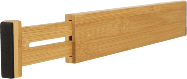 Koge täiuslikku korda praktilise sahtlikorraldajaga, mis võimaldab hõlpsalt paigutada kõik sinu esemed. Eralda erinevad esemed ka ühes sahtlis ja naudi esteetilist välimust tänu bambusmaterjalile. Korraldaja sobib ideaalselt kööki, vannituppa või garderoobikappi, reguleeritava pikkusega 34 kuni 43,5 sentimeetrit, et see sobituks täiuslikult sinu sahtlitesse.