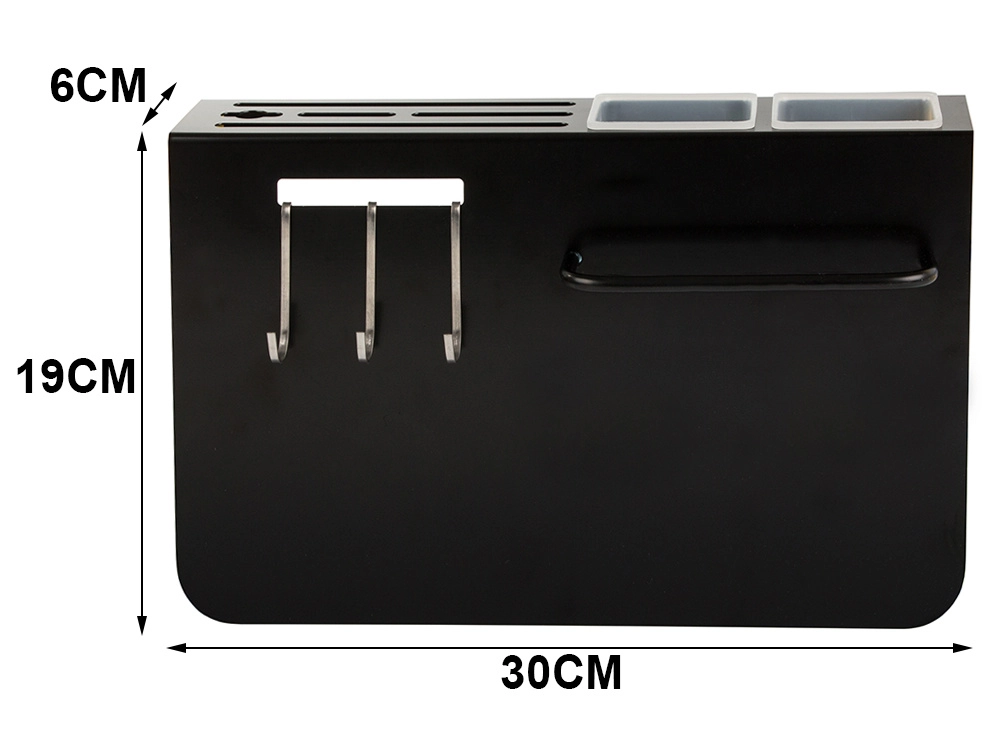 Köögi nugade korraldaja on valmistatud pulbervärvitud terasest, mis tagab pika tööea. Korraldaja kinnitatakse seinale, säästes tööpinnal ruumi. Paigaldus on lihtne kas liimiga või tüüblite ja kruvidega, mis on komplektis kaasas. See on kavandatud tagama maksimaalse ruumikasutuse ja mugavuse kasutamisel.