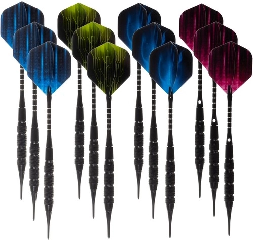 - Kerged nooled: Valmistatud kvaliteetsest materjalist vastupidava teraga; iga nool kaalub 18 grammi ja on libisemisvastase viimistlusega.