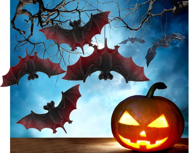 Loo hetkega kummitav Halloweeni õhkkond! See 4 realistliku nahkhiire komplekt vastupidavast plastist/kummist sobib ideaalselt kodu, aia ja peo kaunistuseks. Riputa need lihtsalt oksale, võrgule või riiulile ja saad efektse dekoratsiooni silmapaistvate musta‑punaste tiibadega.