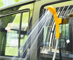 Komplektis on iminapp ja konks, et riputada dušiotsik mugavalt aknale või keredetailile.