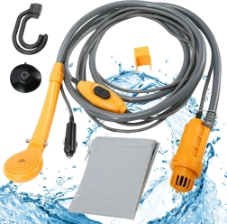 See kaasaskantav reisidušš töötab standardse 12V auto pistikupesa kaudu, nii et seda on lihtne kasutada autos, matkaautos, paadil või krundil, kus on ligipääs akule. Tänu pikale toitekaablile ja voolikule on käsitsemine mugav ja pesu kiire.