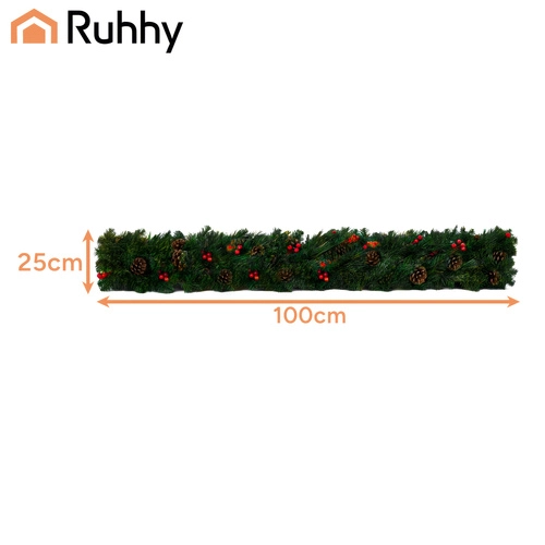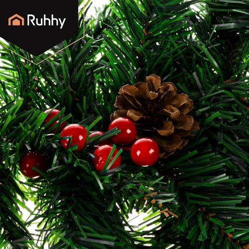 Stiilne 1 m jõulugirland tiheda PVC-okastikuga on ideaalne uste, rõdude, piirete ja sammaste kaunistamiseks. Tänu plastilisusele vormid selle hõlpsalt vastavalt vajadusele – sirgest ääristusest kuni mitmekihiliste ümarate dekoratsioonideni. Integreeritud käbid ja oksakesed punaste marjadega lisavad loodusliku ja elegantse ilme.