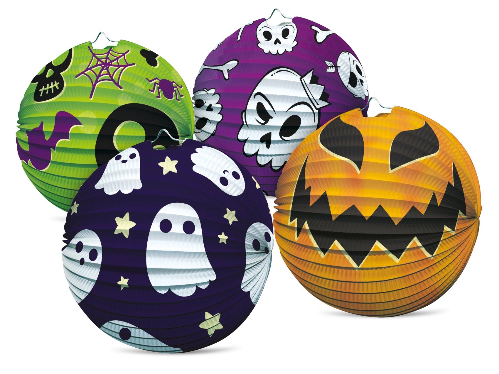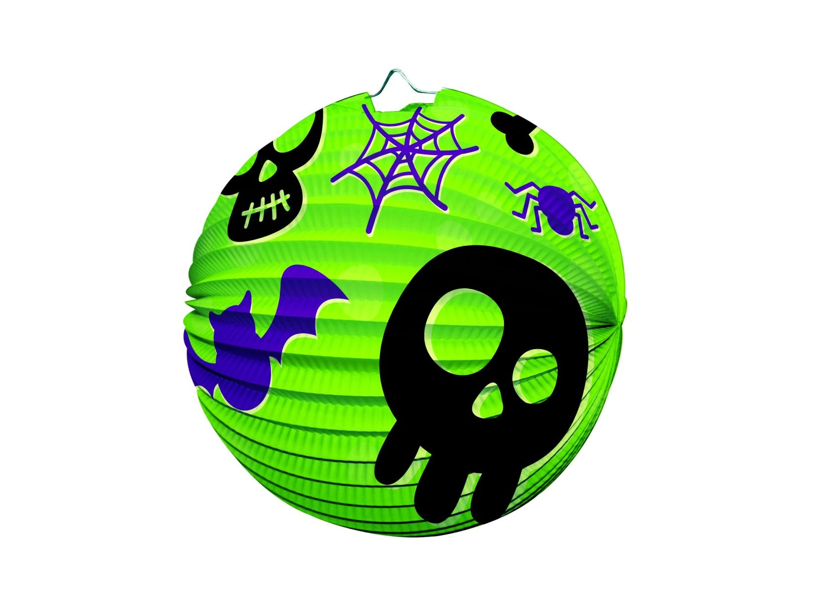 Loo hetkega võluv Halloweeni kaunistus. 25 cm läbimõõduga paberist lampionil on ribidega konstruktsioon, metallist riputusvõru ja silmapaistvad Halloweeni motiivid. Sobib hästi teemapidudeks, karnevaliks, sünnipäevadeks ning ka lastetoa kaunistuseks.