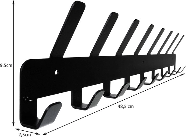 Hoidke mantlid, joped, kotid ja aksessuaarid mugavalt ühes kohas. See seinale kinnitatav nagi pakub 9 alumist ja 8 pikemat ülemist konksu, tagades piisava ruumi kogu perele. Minimalistlik välimus ja must viimistlus sobivad suurepäraselt nii modernsesse kui klassikalisse interjööri.