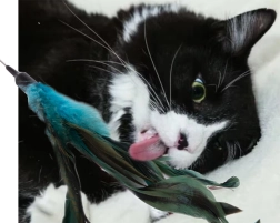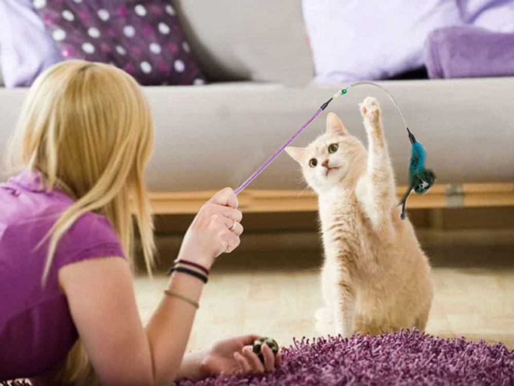 Värvilised suled on pehmed ja kutsuvad kasse suhtlema.