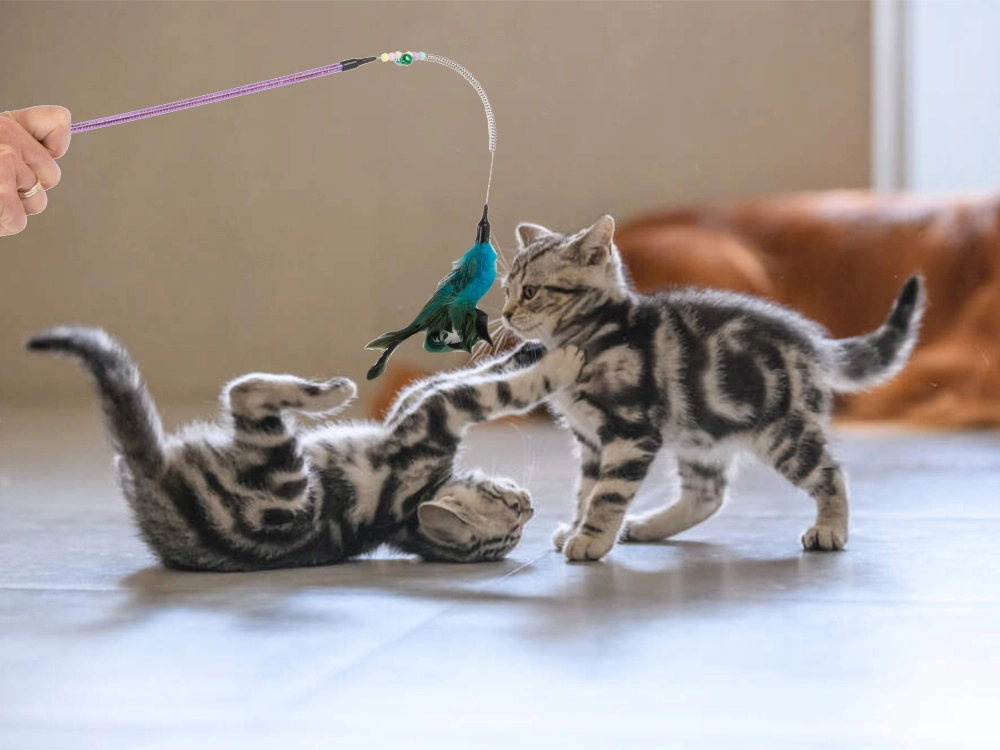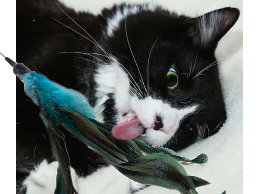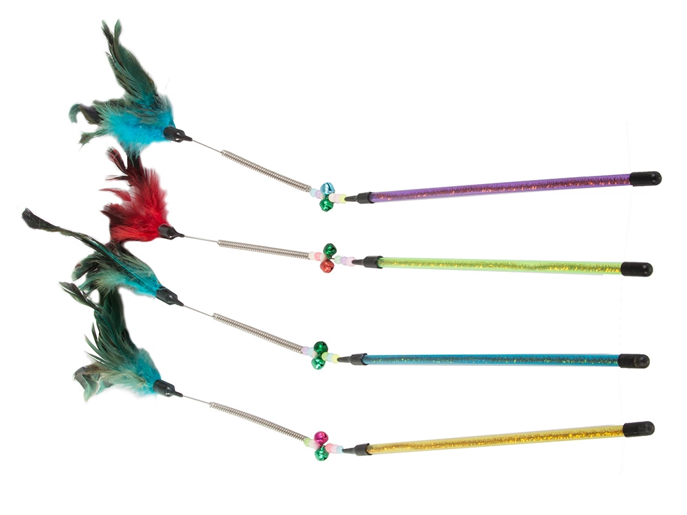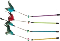 Jäljendage loomulikku jahti selle interaktiivse mänguasjaga kassidele, mis soodustab füüsilist aktiivsust ja hoiab igavuse eemal. Hüppamine, jooksmine ja jahtimine aitavad kaasa nende üldisele tervisele ja heaolule. Varras on valmistatud vastupidavast, paindlikust ja kergest plastist, mis võimaldab dünaamilist mängu. Värvilised suled on pehmed ja atraktiivsed, meelitades kasse suhtlema. Pikk varras pakub piisavat pikkust erinevateks liigutusteks, tagades mängu ajal mitmekesisuse. See mänguasi on suurepärane võimalus tugevdada omaniku ja kassi vahelist sidet.