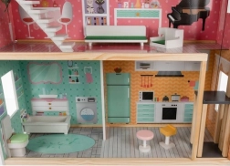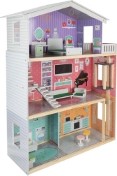 MDF-ist ja männipuidust valmistatud konstruktsioon tagab vastupidavuse ja stabiilsuse. Töötav lift, mida juhitakse vändaga, liigutab nukke korruste vahel, samas kui rikkalik mööblikomplekt võimaldab kohe mängima hakata.