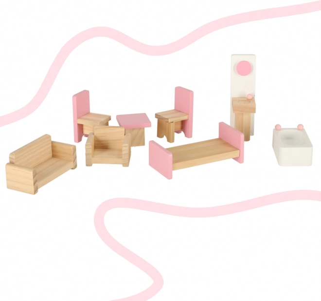 Komplekti kuulub rikkalik komplekt puidust mööblit õrnades roosades toonides, nii et saate kohe sisustada elutoa, vannitoa ja magamistoa. Lõbu algab juba ühisel kokkupanekul – paigaldus on lihtne ja kõik vajalik on pakendis olemas.