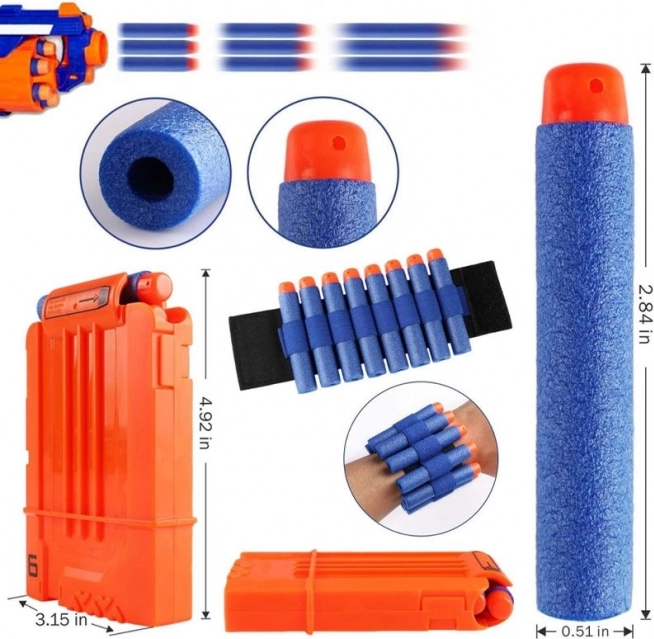 Komplekti kuulub ka nooltevöö/ümbris välgukiireks täiendamiseks, lisasalv ning 30 pehmet vahtnoolt, mis ühilduvad populaarsete blasteritega. Tänu kergetele materjalidele ja nutikale taskupaigutusele on liikumine mugav ja mängutempo püsib kõrge.