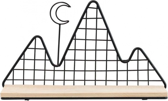 See elegantse musta viimistlusega dekoratiivne riiul ühendab funktsionaalsuse ja disaini. Kerge traadist konstruktsioon mäemotiiviga jätab õhulise mulje, samas kui tugev puidust riiul hoiab turvaliselt väikesed dekoratsioonid, küünlad, taimed, pildiraamid või lemmikraamatud.