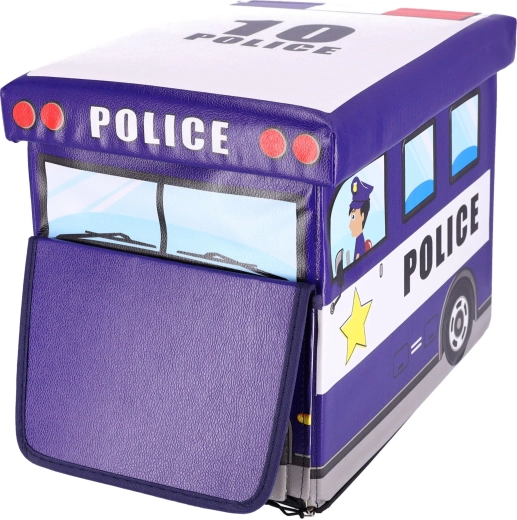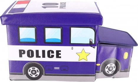 Praktiline ja dekoratiivne hoiukast politseiauto kujul aitab hoida korda lastetoas. Kaks sisemist lahtrit võimaldavad kiiret sorteerimist mänguasjadele ja tarvikutele, tugev kaas tagab lihtsa ja ohutu avamise. Tänu stabiilsele konstruktsioonile saab kasti kasutada ka mugava tabureti, jalatoe või väikese lauakesena.
