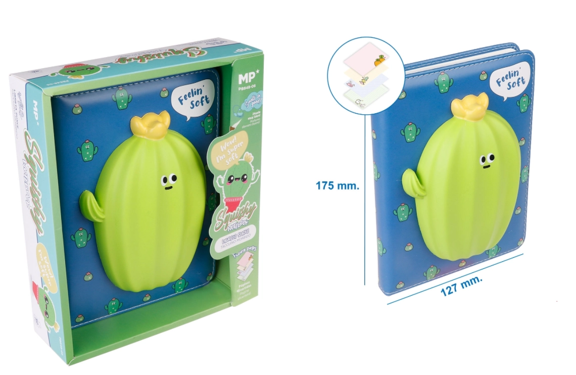 Stiilne ja praktiline märkmik, mis rõõmustab esimesest puudutusest. Kõvad kaaned kaitsevad sisu ning kaant kaunistab armas kaktuse squishy motiiv. Kompaktne formaat mahub käekotti või koolikotti, mistõttu on see ideaalne igapäevaseks kasutamiseks.