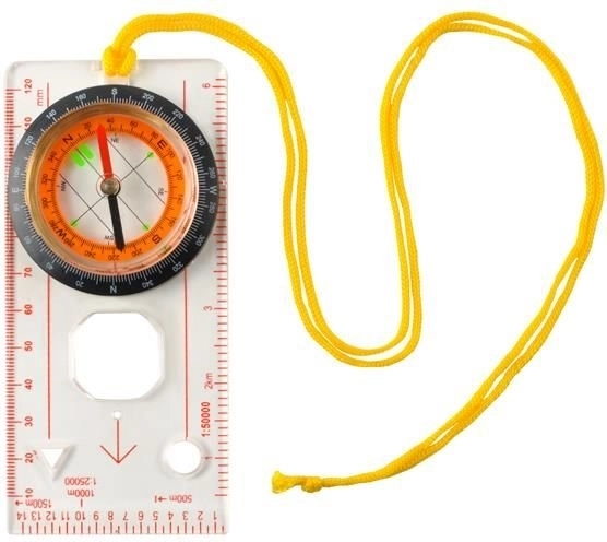 Kompass kaardilugemiseks on ideaalne tööriist maastikul orienteerumiseks, olenemata sellest, kas oled kogenud matkasell või aeg-ajalt loodusesse mineja. Tänu läbipaistvale alusele ja magnetnõelaga pööratavale rõngale võimaldab kompass täpset suuna määramist. Servades paiknevate mõõteliinidega on see sobiv täpseks kaartide lugemiseks. See on ka kerge ja kaasaskantav tänu kollasele nöörile, mida on lihtne kinnitada või kaasas kanda.