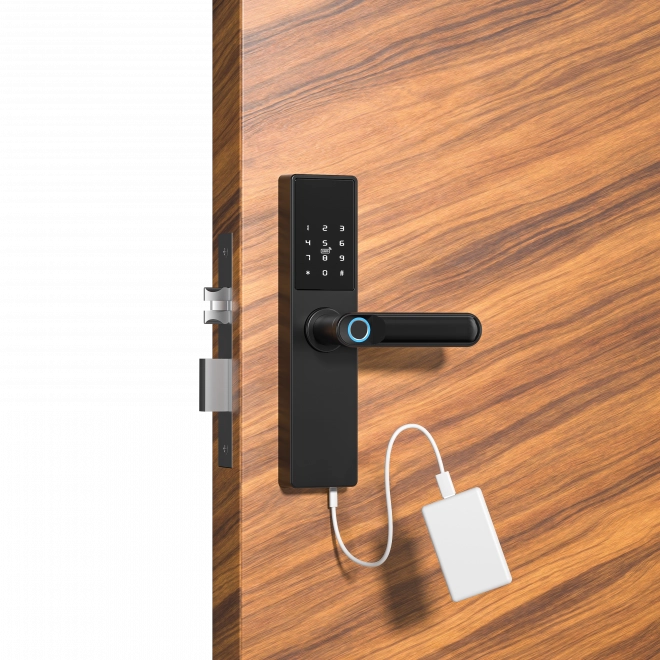 Tugevda oma kodu turvalisust uue nutika lukuga. Halda ligipääsu oma korterile või tööruumile ükskõik kust! Vastupidav ukse käepide, mis lihtsustab ligipääsu haldamist tänu integreeritud sõrmejäljelugejale.