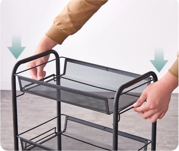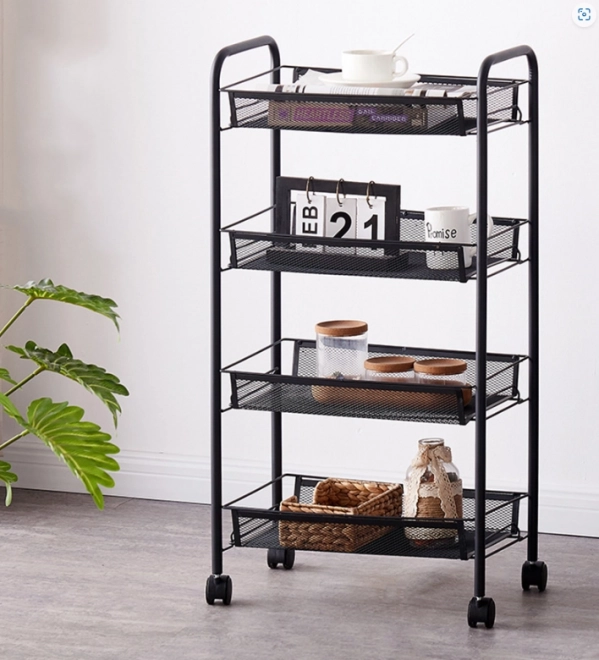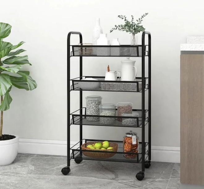 Riiulil on neli ratast, mis võimaldavad lihtsat käsitsemist ja ümberpaigutamist.