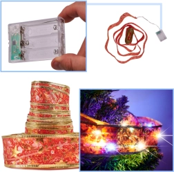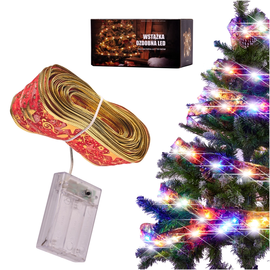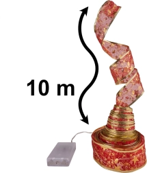 See jõululint ühendab dekoratiivse välimuse valgusefektiga. Kuldse-punase tooniga lint integreeritud LEDidega loob õrna, värvilise valguse kogu pikkuses ning sobib suurepäraselt kuusele, käsipuule, kaminaimsile ja pidulikele kompositsioonidele. Patareitoide võimaldab kasutust ka ilma pistikupesata.
