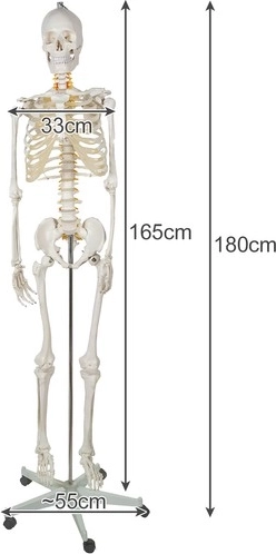 Luustikumudel on 165 cm ilma alusega ja 180 cm koos alusega, mis vastab täiskasvanud inimese realistlikule suurusele.