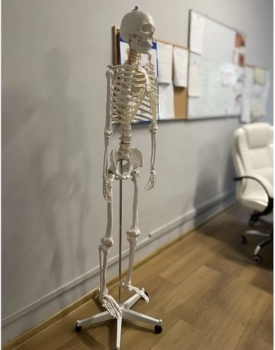 Realistlik anatoomiline mudel inimluustikust mõõtkavas 1:1, kõrgus 180 cm, koos ratastega alusega ja praktilise tolmukaitsega. Sobib suurepäraselt anatoomia õpetamiseks, vastupidava konstruktsiooni ja anatoomiliselt täpsete detailidega.