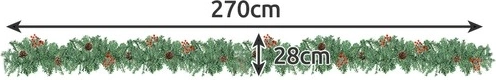 Elegantne 270 cm pikkune jõulugirland tiheda okasroheluse, looduslike käbide ja punaste marjadega toob teie koju sära tänu soojale LED-valgustusele. See on kerge, vormitav ja vastupidav, lihtne paigutada trepipiirdele, kaminaimsile või uksele. 50 LED-i patareitoitel loob hubase piduliku meeleolu ilma pistikupesata.