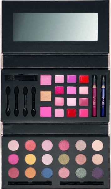 - Täielik varustus ühes: lauvärvid, huulepulgad, põsepuna, bronzer, pliiatsid ja aplikaator
