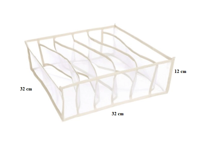 Too kord sahtlitesse ja kappi praktilise korraldajaga, millel on 6 vaheseina. Kerge ja hingav mittekootud tekstiilist, lihtne puhastada ning tänu läbipaistvatele külgedele on sisu kohe nähtav. Ideaalne rinnahoidjatele, sokkidele, aluspükstele, lipsudele ja sallidele.