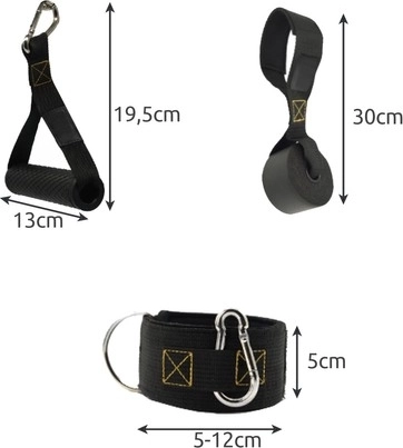 Ukseankur, käepidemed ja pahkluurihmad laiendavad treeningvõimalusi. Kaasas on praktiline kott lihtsaks transportimiseks.