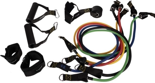 Universaalne TRIZAND vastupanu kummide komplekt pakub kõike, mida vajad tõhusaks kodutreeninguks. Viis värvidega eristatavat elastset latekslinti katavad vastupanuvahemiku 5–25 kg ning nende kombineerimisel saavutad suurema koormuse progressiivseks tugevustreeninguks. Tugevad metallkarabiinid, mugavad vahust käepidemed, pahkluurihmad ja ukseankur tagavad turvalise kinnituse ja laiad kasutusvõimalused.