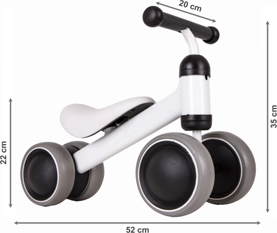 Kerge, 2,2 kg kaaluv konstruktsioon on valmistatud vastupidavast plastist. Pehmest materjalist rattad tagavad turvalise sõidu ilma libisemiseta.