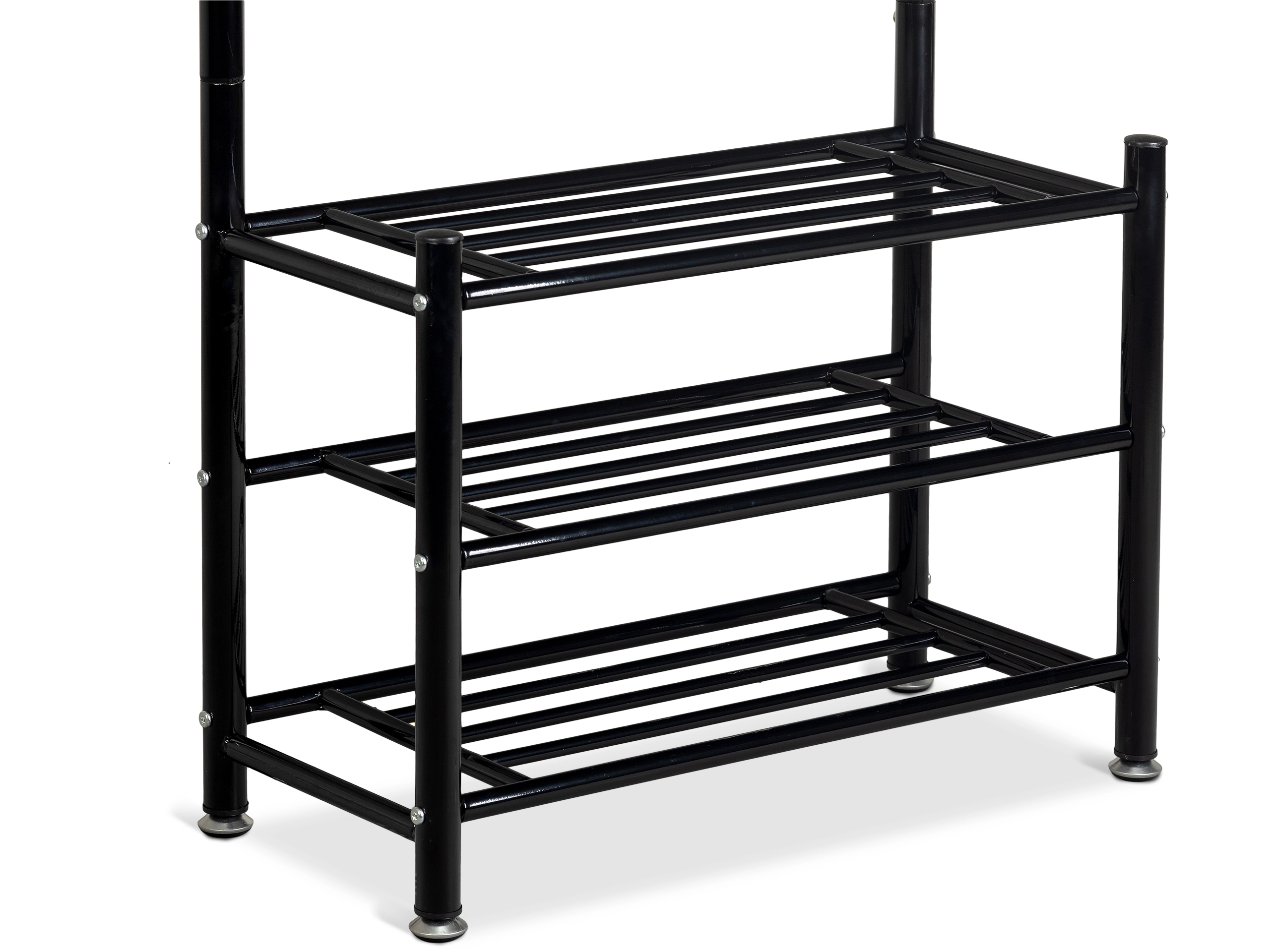 Stange alumises osas on kolm praktilist riiulit, kuhu saab paigutada väiksemaid rõivaesemeid, käekotte ja ka jalanõusid. Neljal jalal põhinev stabiilne konstruktsioon tagab kindluse ka suurema koormuse korral.