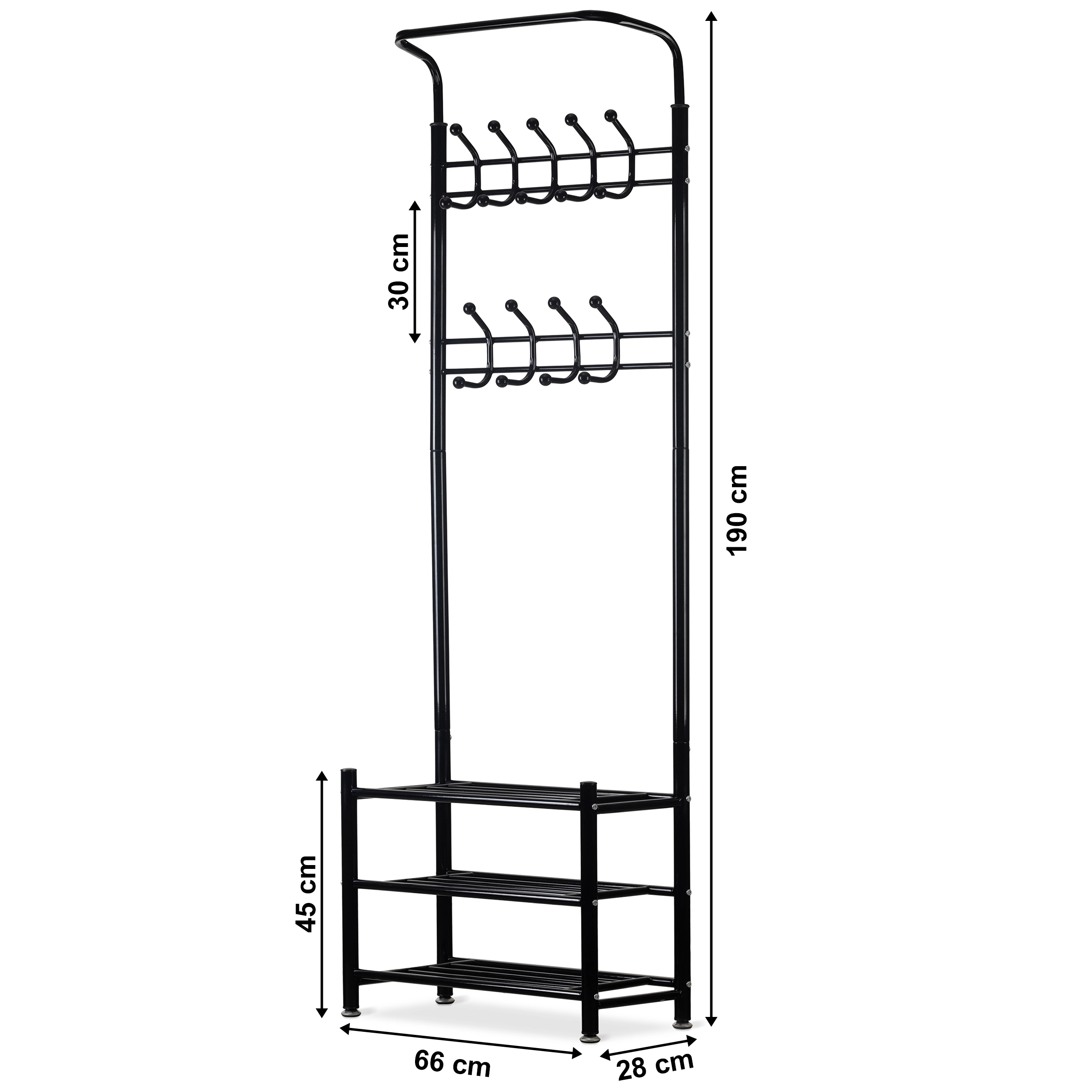 Pakkumisel on 18 konksu ja 3 riiulit, et riided ja jalanõud oleksid eriti tõhusalt organiseeritud.