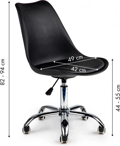 Tänu gaasitõstukile seadistate hõlpsalt ideaalset istumiskõrgust, et töökoha ergonoomika oleks alati paigas. Stabiilne kroomitud alus viie haruga ja vaiksed kummirattad võimaldavad sujuvat liikumist ning kaitsevad põrandat kriimustuste eest.