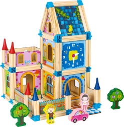 See puidust ehituskomplekt viib teie lapse piiramatute ehitiste ja uute struktuuride loomise maailma. Atraktiivsete värvide ja suure hulga klotsidega komplekt tagab tundide kaupa mängurõõmu.