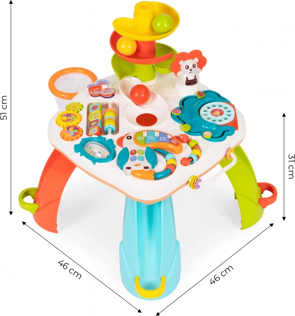 Õppelauake on suurepärane viis aega veeta ning samal ajal toetada lapse arengut. Mänguasjal on palju manipuleerimismänguasju, nagu muusikaline tukaanklaver, kõrin, värvilised helmed, pöörlevad elemendid ja telefoni ketasvalija, mis aitavad arendada peenmotoorikat ja koordinatsiooni.