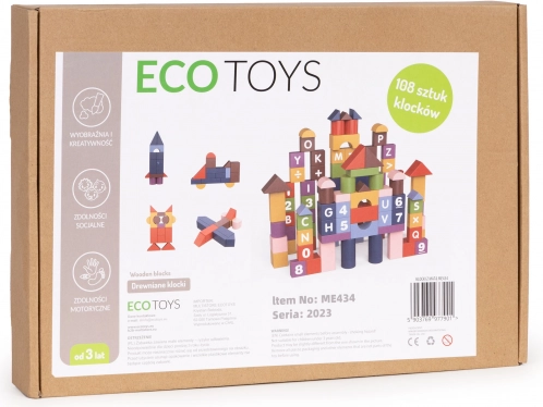 Klotsid on valmistatud kvaliteetsest puidust, neil on siledad servad ning need on kaetud ohutute, keskkonnasõbralike värvidega. Tänu kirkatele värvidele ja mitmekesistele kujudele arendavad need nägemistaju, silma–käe koordinatsiooni ja loovust. Ideaalne nii iseseisvaks mänguks kui ka ühiseks ehitamiseks koos vanematega.