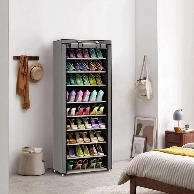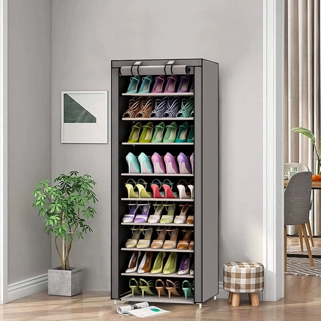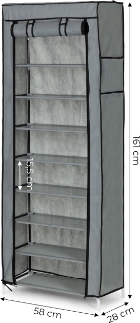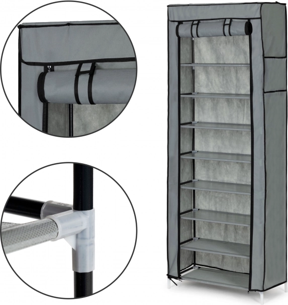 See tekstiilkapp on ideaalne lahendus magamistuppa, esikusse ja vannituppa. Mitmekihiline riiulisüsteem pakub rohkelt ruumi T-särkidele, kampsunitele, käekottidele ja jalanõudele, samas kui tõmbelukuga rullkate kaitseb sisu tolmu ja niiskuse eest ning võimaldab kiiret ligipääsu hoiustatud asjadele.