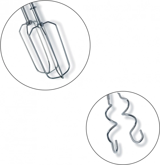 Mikserile saab paigaldada vahetatavad otsikud segamiseks ja vahustamiseks. See tuleb probleemideta toime ka raskemate tainastega, nagu jõulune juustukook või lihavõtteline pärmitaigen.