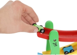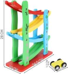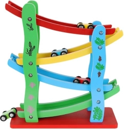 Puidust võidusõidurada autodele ei ole ainult lõbus lisavidin, vaid ka hariv abivahend. Siin on 4 eri värviga tasandit, mis toetavad värvide äratundmist. Tänu oma konstruktsioonile võimaldab rada autodel sujuvalt alla veereda, mis aitab jälgida põhjuslikke seoseid.