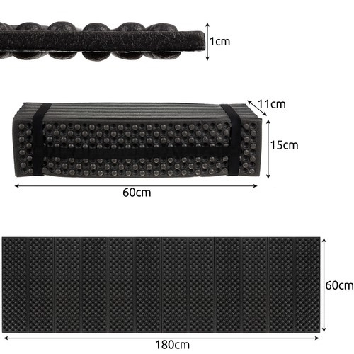 See kokkupandav matt mõõtudega 180 × 60 × 1 cm on valmistatud kvaliteetsest EVA-vahust, mis paistab silma madala kaalu, pika kasutusea ja väga heade termoisolatsiooniomaduste poolest. Profileeritud pind väikeste mügarikega suurendab mugavust, vähendab libisemist ja tasandab paremini ebatasasusi maastikul.