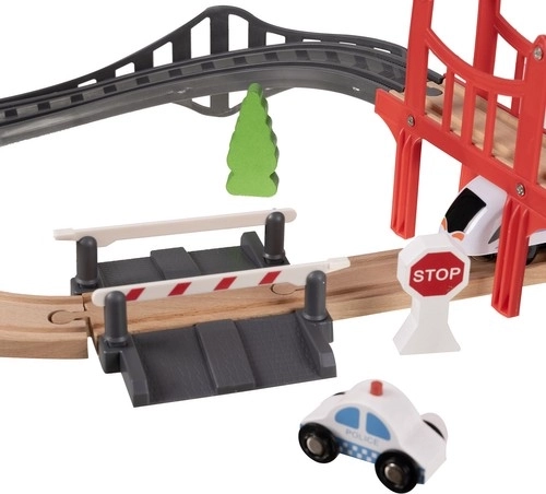 See puidust rongirada on ideaalne lahendus laste loovuse ja kujutlusvõime arendamiseks. See on loodud nii, et lapsed saaksid sukelduda raudteelõbu maailma kodus või õues. Komplekt sisaldab kokku 37 täpselt töödeldud elementi, sealhulgas silda ja hooneid, mis lisavad mängule realistlikke detaile.