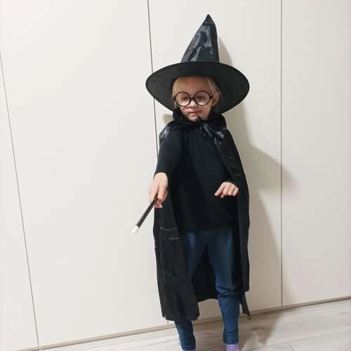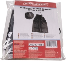 See stiilne võlurikostüüm pakub kõike, mida lapsed vajavad muljetavaldava ja turvalise kostüümi loomiseks. Kerge ja mõnusast materjalist keep langeb elegantselt ja püsib tänu sidumisele hästi paigal. Terava tipuga müts avaneb ise ning loob efektse „wow” hetke. Ümmargused klaasideta prillid on mugavad ja mängimisel ohutud, vastupidavast plastist võlukepp täiendab iga trikki.