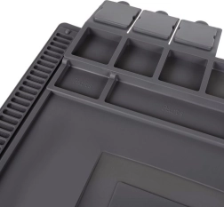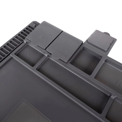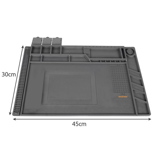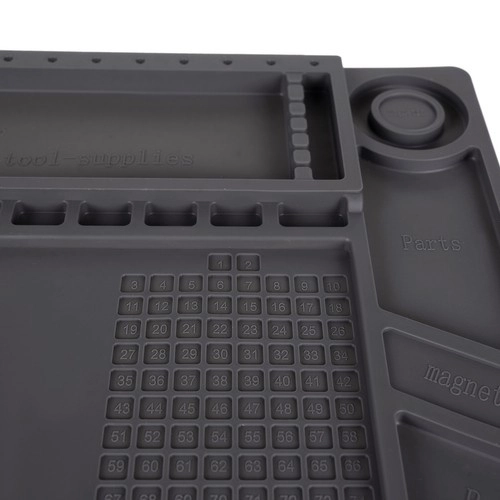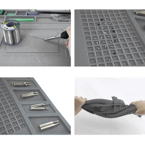 See mitmeotstarbeline silikoonist hooldusalus sobib ideaalselt telefonide, sülearvutite parandamiseks ja peenteks jootmistöödeks. Tänu 4 magnettaskule, jaotatud lahtritele ja spetsiaalsetele kohtadele kruvikeerajatele on kõik pisidetailid ja tööriistad alati kontrolli all. Libisemiskindel materjal hoiab kõik oma kohal ka nõudlikumate tööde ajal.